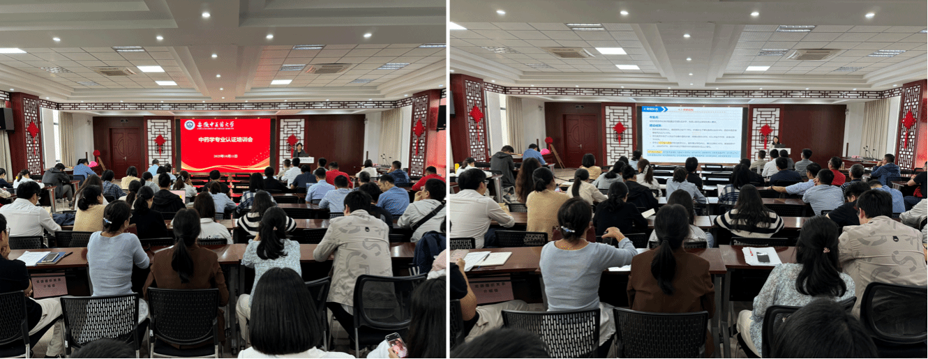 桂双英副校长结合自身多年教学管理与专业认证评审经验,从中药学专业认证的宗旨和目标、教育计划、学生成绩评价、师资队伍、教育资源、教育评价、学生发展、科学研究、管理和行政、改革与发展等十个方面,对认证标准、考察点和我校中药学专业的建设成效进行了逐条解读,并就现场考察安排、考察形式等关键环节提出了具体指导。她强调全体教师要以高度的责任感和使命感投入专业认证的准备工作,确保各项任务落实落细。